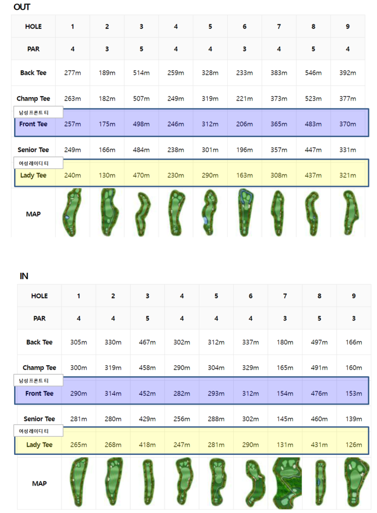 여성 Lady Tee 평균 거리 입니다. 역시 거리가 조금 있는 편 입니다.