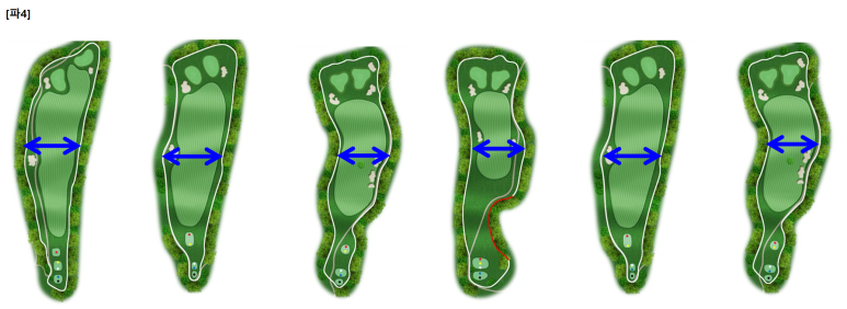 ● 파4 : 파4는 확실히 IN코스부터 넓다는 느낌이 옵니다. 슬라이스 나거나 좌측으로 휘어도 쉽게 오비가 나지 않습니다. 전체적으로 파4는 확실히 페어웨이가 넓은 코스 입니다.